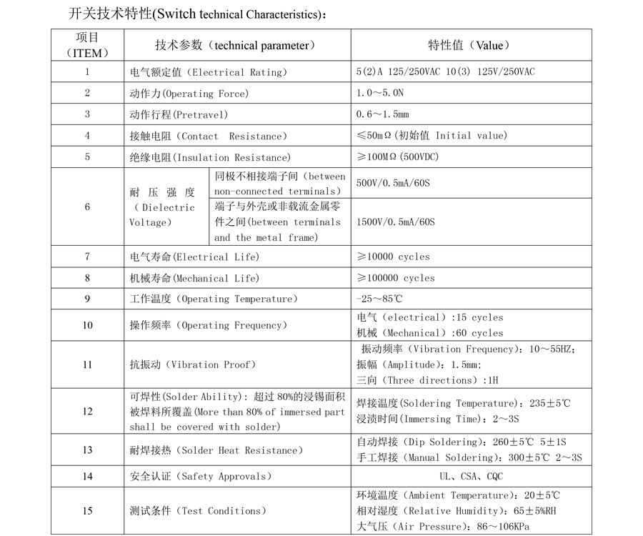 | 8 | Издржи напон: помеѓу терминалот и терминалот 500V/60S/0,5mA; |