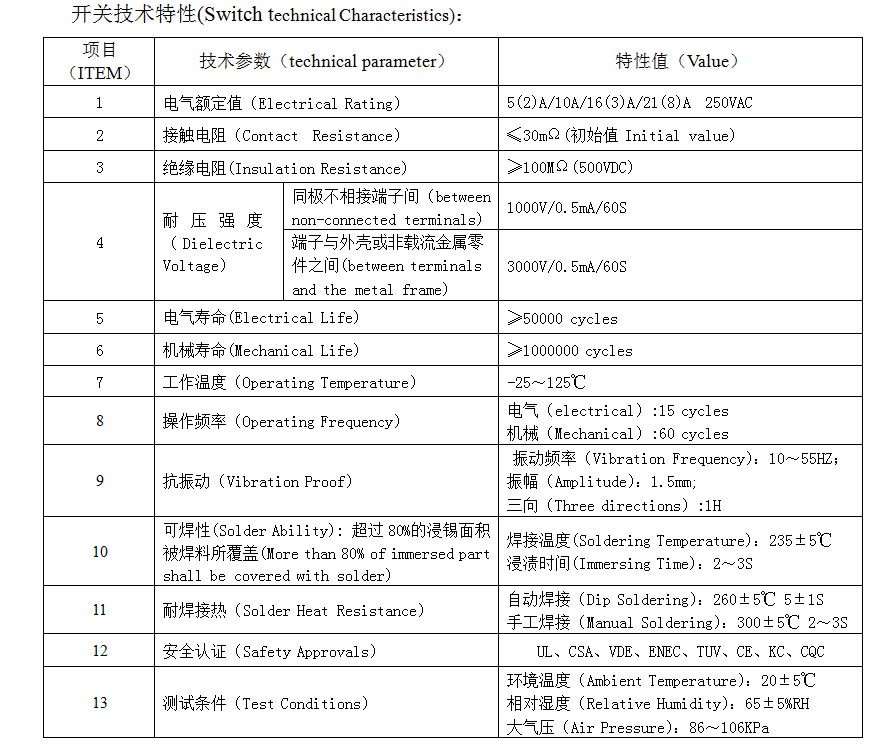 | 1 | Електрични рејтинг | 5(2)A/10A/16(3)A/21(8)A 250VAC | |