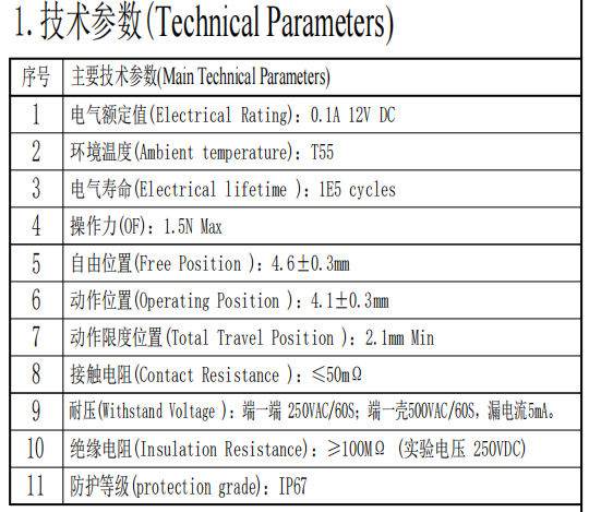 | 1 | Електричен рејтинг | 0,1а 12VDC | |